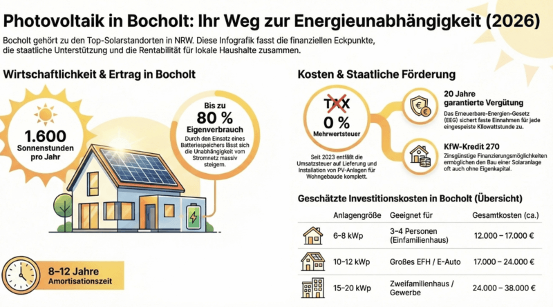 Read More☀️ Das Wichtigste in Kürze: Photovoltaik in Bocholt Bocholt zählt zu den sonnenreichen Standorten in NRW – mit rund 1.600
