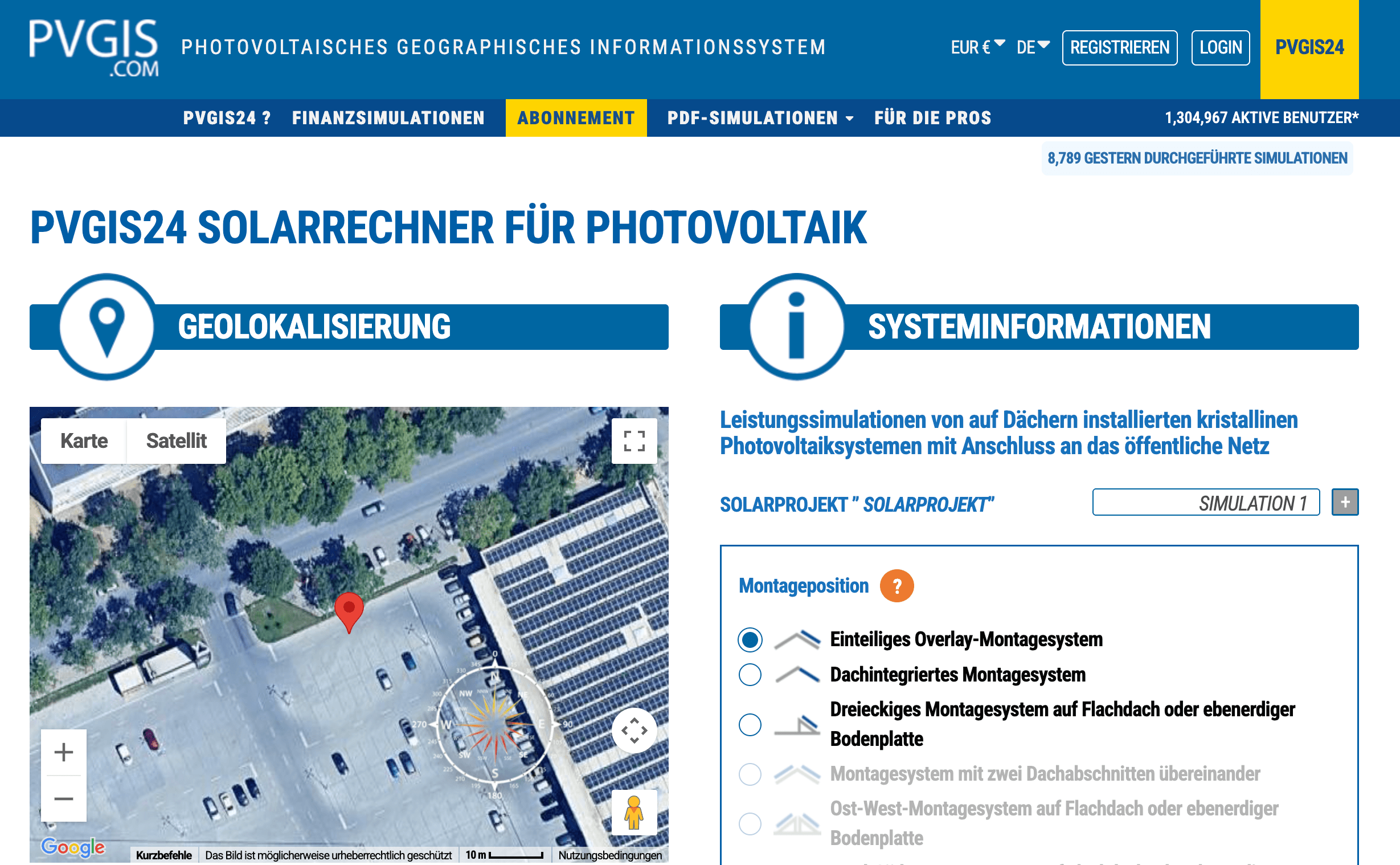 Das kostenlose PVGIS-Tool der EU-Kommission(ec.europa.eu/jrc/pvgis) ermöglicht eine genaue Ertragsabschätzung für jeden Standort in Europa – mit frei wählbarem Neigungswinkel, Ausrichtung und Systemparametern. Unbedingt nutzen, bevor Sie eine Anlage beauftragen.