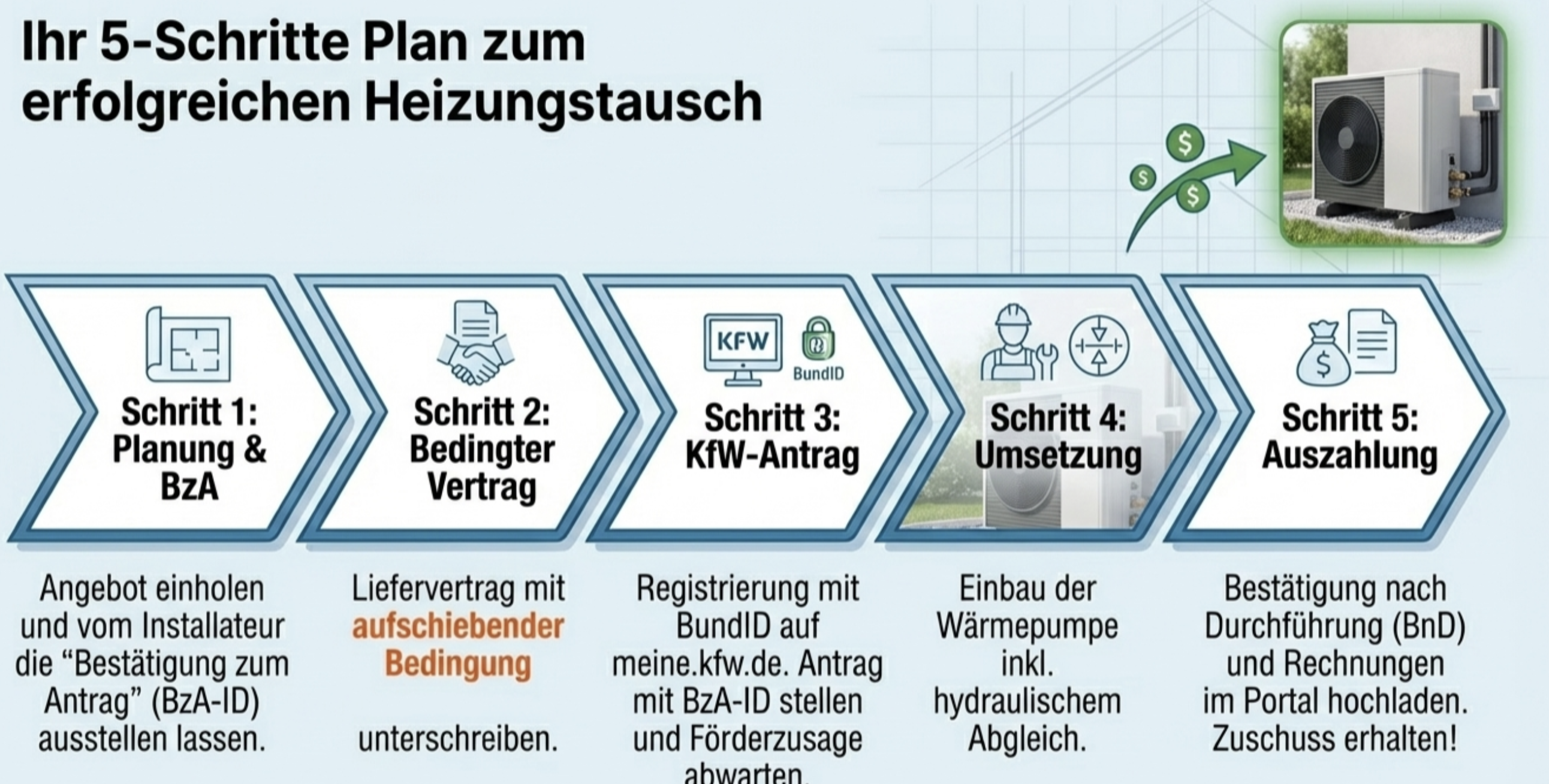 Förderzusage erhalten → Vertrag wird wirksam → Installation beauftragen