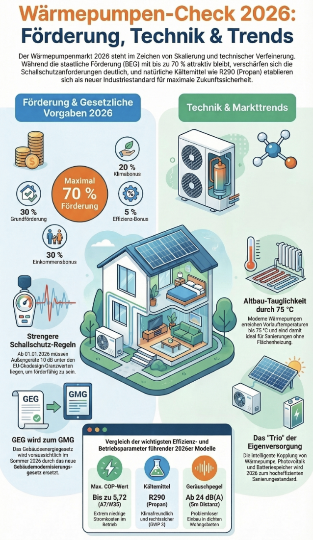 - Preisverfall: Hersteller bringen gezielt günstige Einsteigermodelle (Monoblock) auf den Markt, ohne die Förderung (SCOP > 3,1) zu gefährden.
